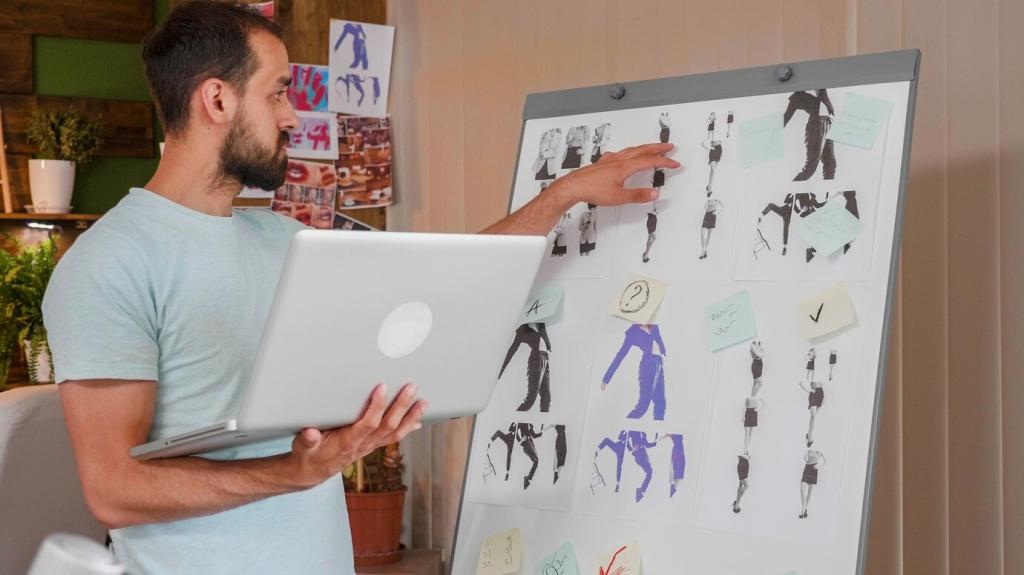 Nutze KI, um fünf Layoutideen in Minuten zu skizzieren, dann filtere anhand von Markenwerten, Accessibility und Implementierbarkeit. Dokumentiere Annahmen transparent. Verrate uns, welche Prompt‑Struktur dir die besten, umsetzbaren Ergebnisse liefert.